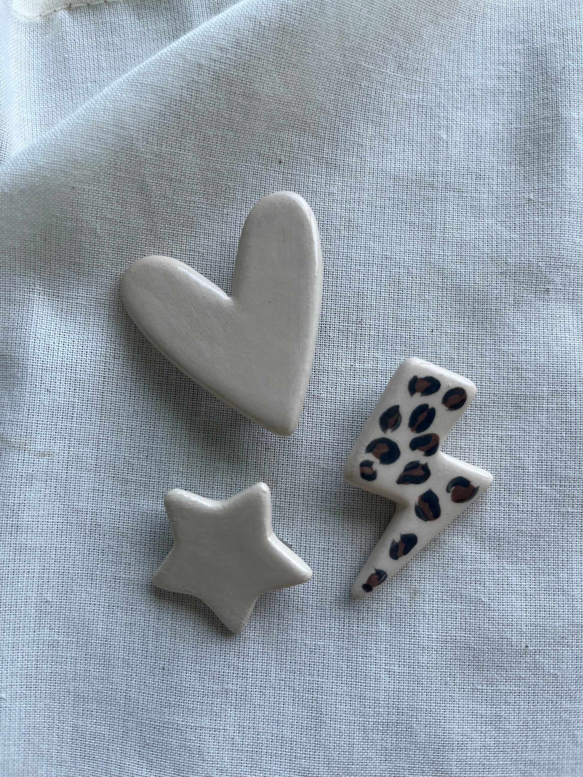 Dimensions : Grand Coeur env.4cm, Petit Coeur env.3cm, Etoile env.2,5cm.