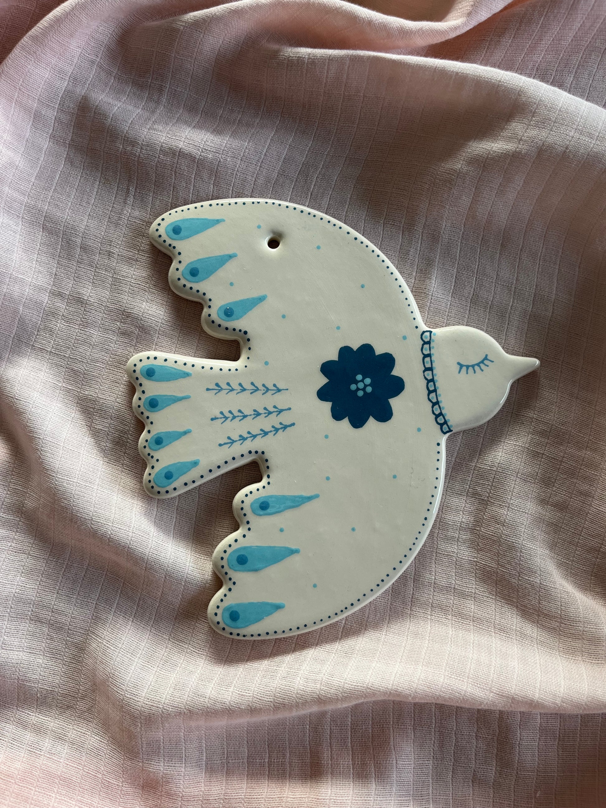 Apportez une touche poétique et délicate à votre intérieur avec cet oiseau décoratif en céramique, entièrement façonné et peint à la main dans mon atelier. Chaque pièce est unique : motifs naïfs, couleurs douces et détails minutieux lui donnent un charme singulier.
